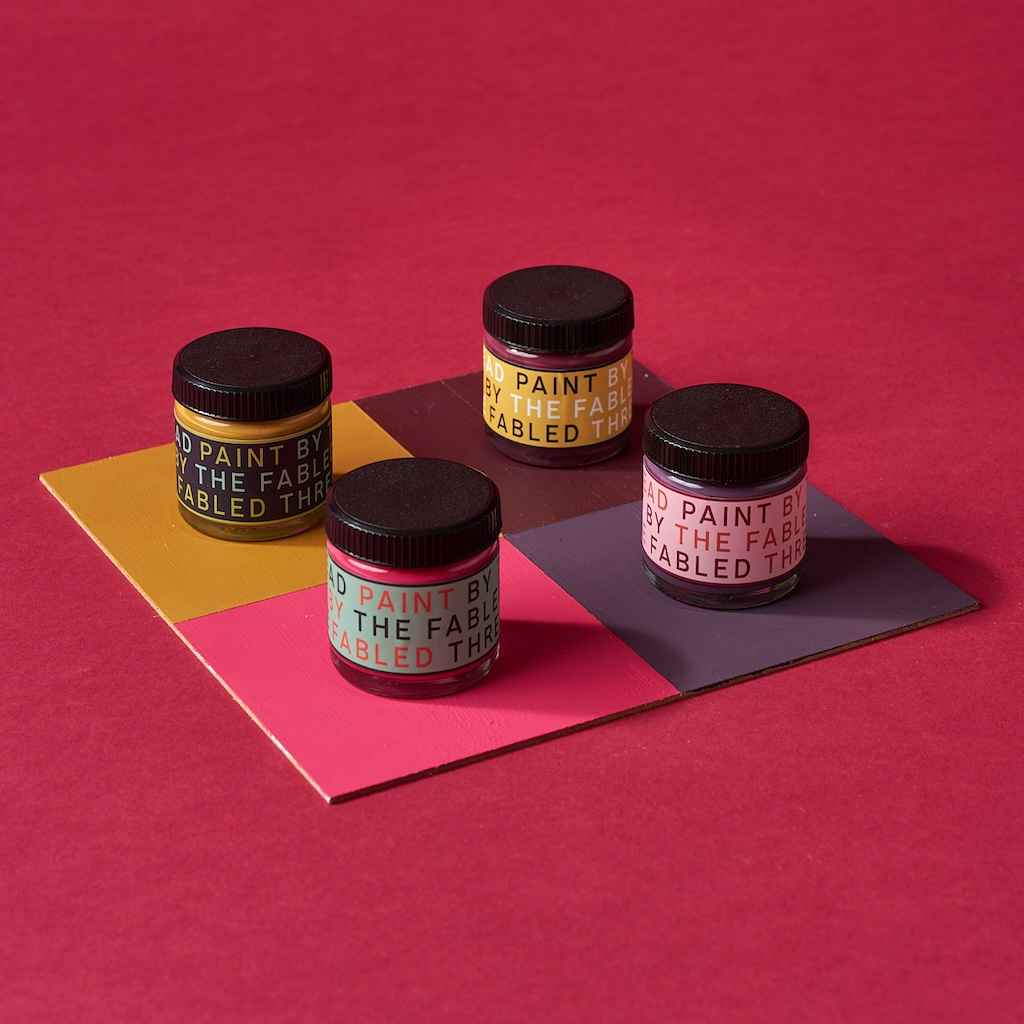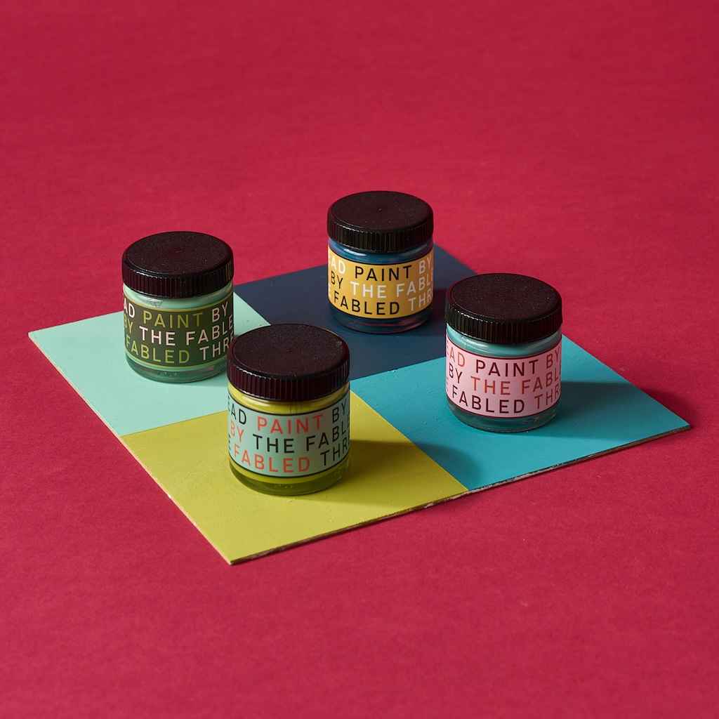 The paints that we stock are chalk-based paints, which we sell in small pots, perfectly sized for covering your frames without leaving with tons of unused paint at the end. We sell these in bundles of four, in different colour palettes that we've carefully curated.