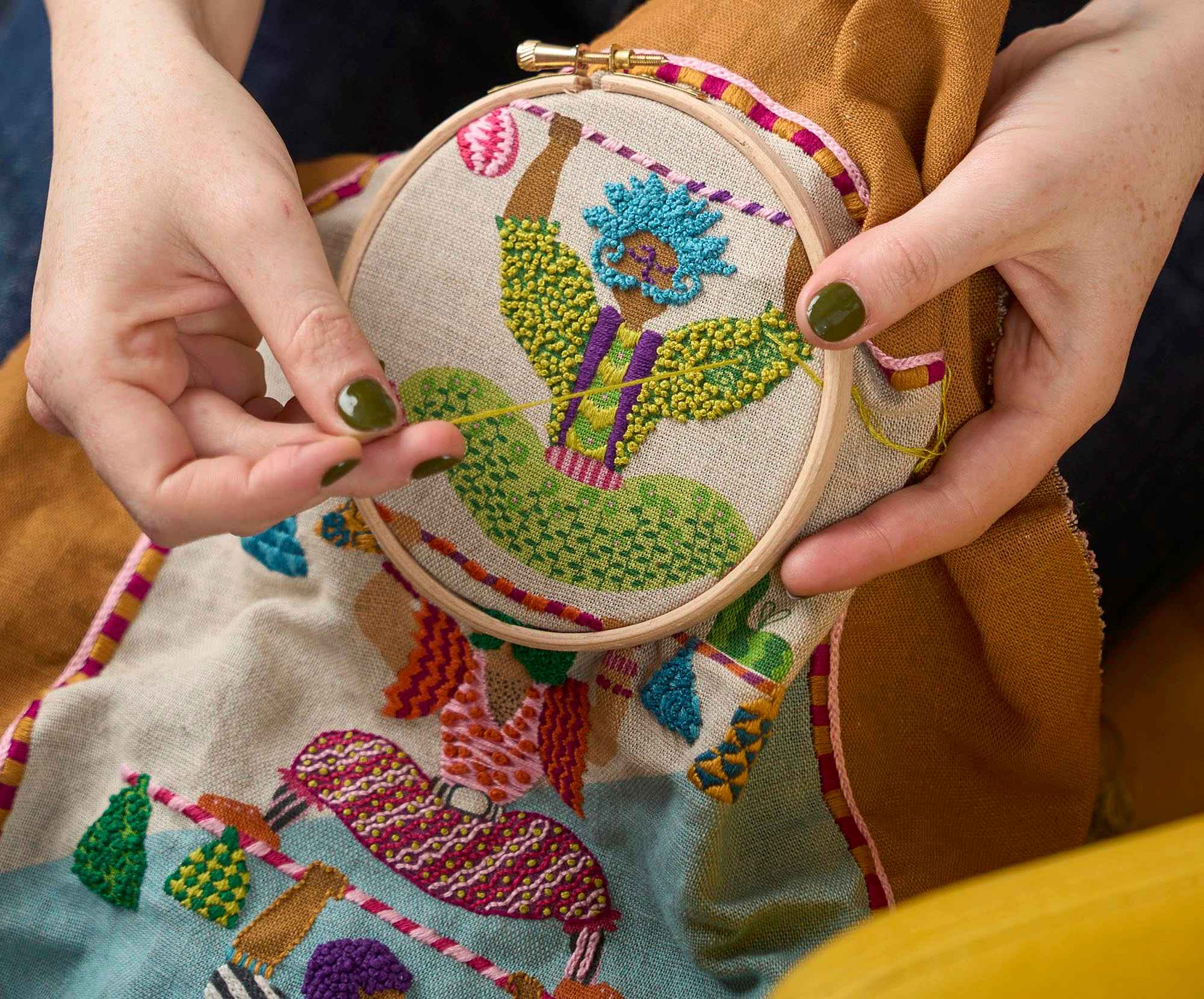 You start with the sampler, which walks you through all the stitches and helps you build confidence, and once you understand how each stitch behaves, you can embellish your circus performer however you like. The joy of these kits is that no two finished pieces are ever the same - take the jewel-like colours and all the stitches you have mastered, and let loose your own creativity.What's included in an embroidery kit?