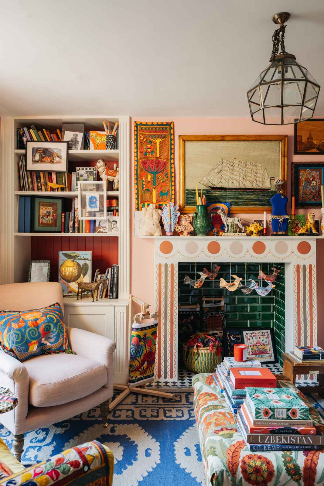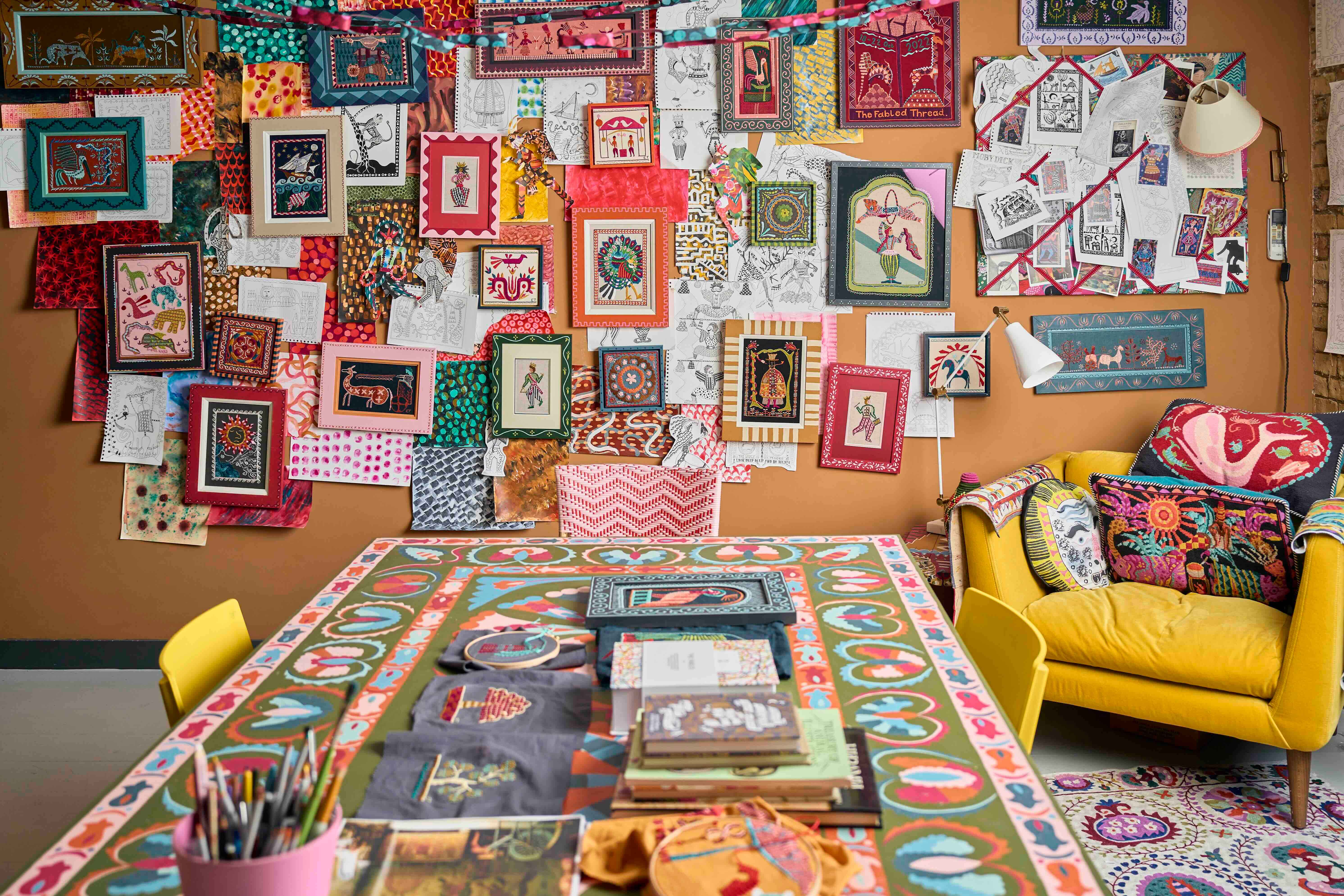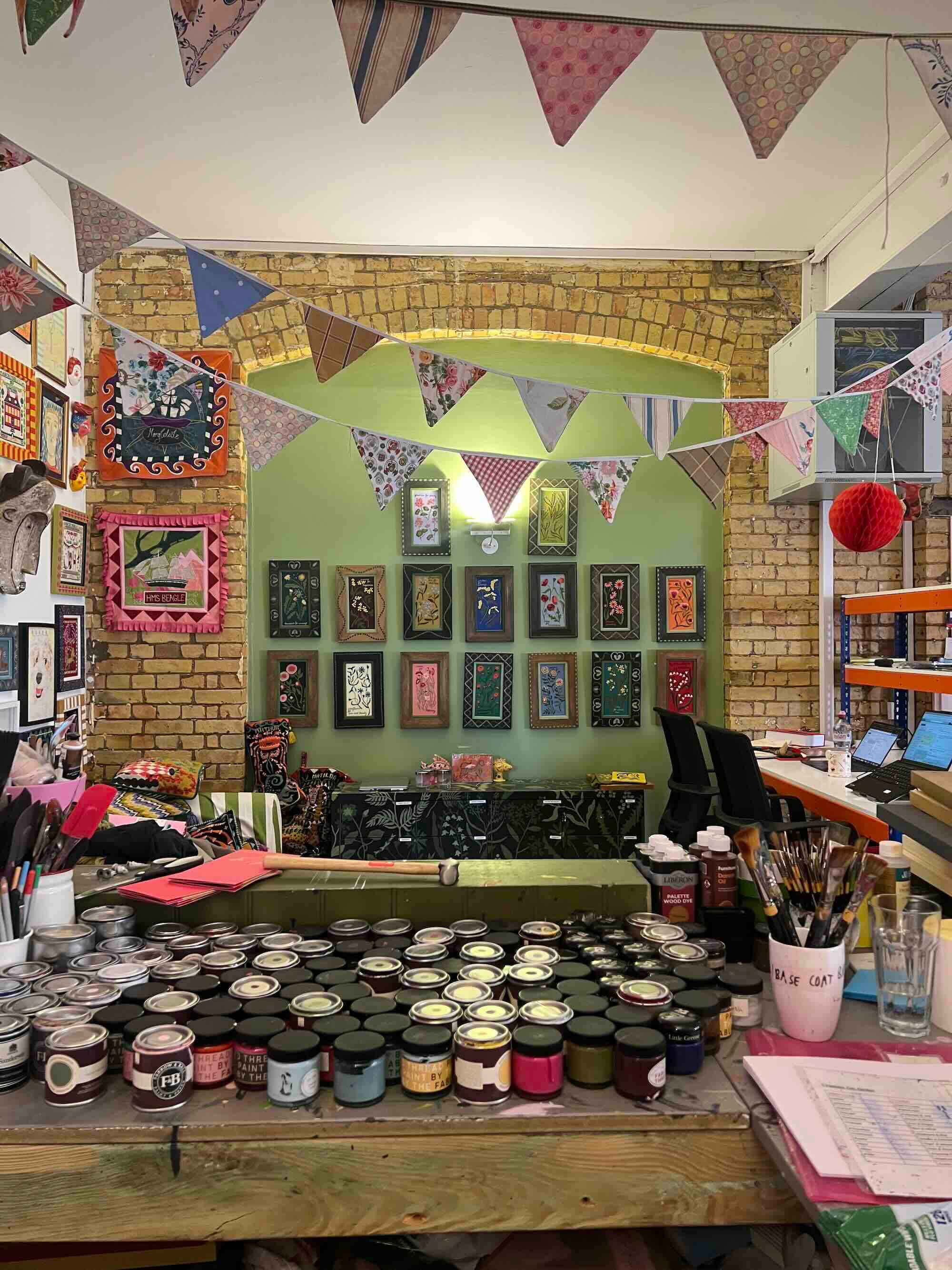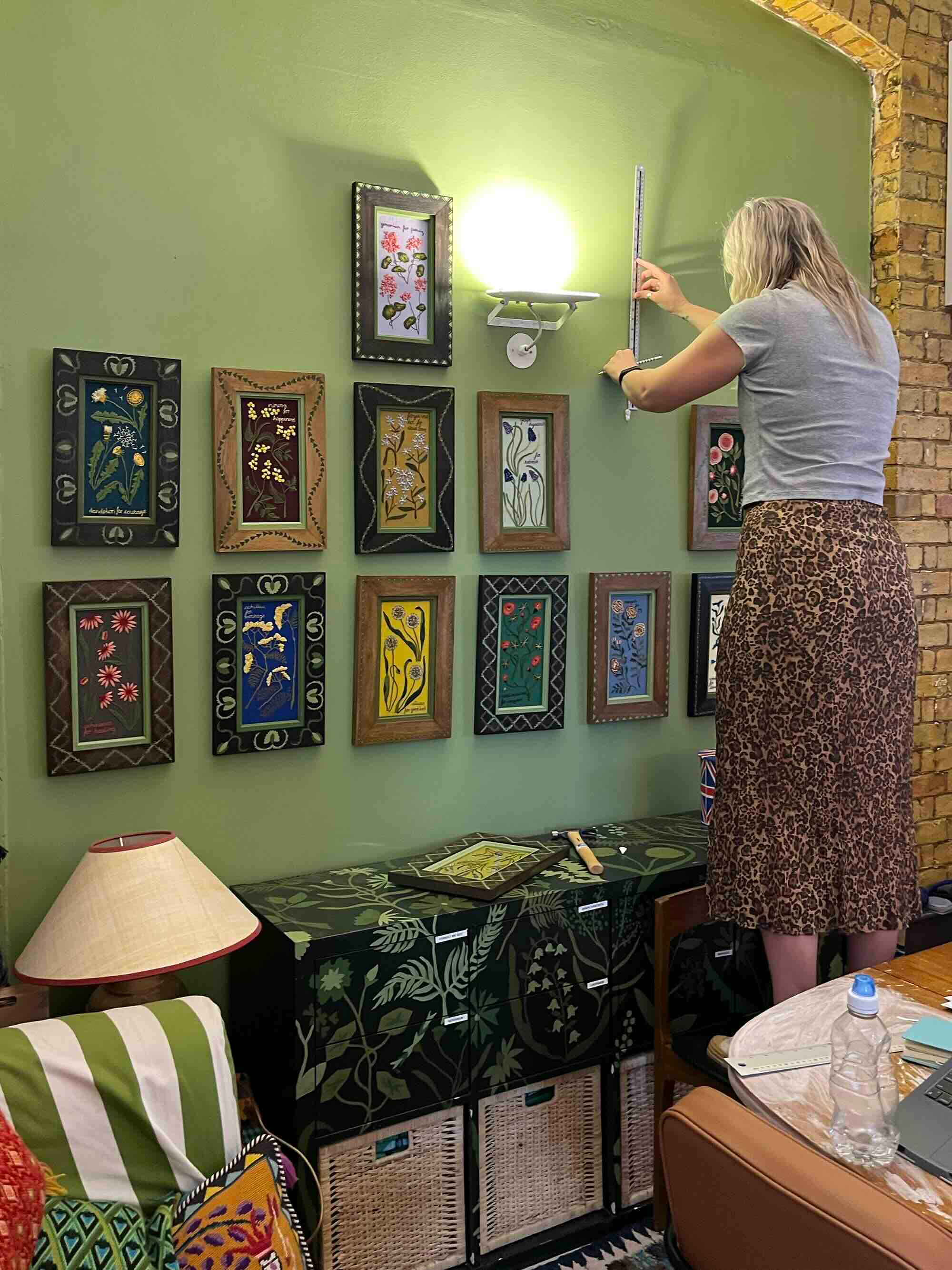 Although we love decorative frame painting, you don’t need to decorate all the frames in your picture wall! It’s good to have some simpler pieces in and amongst the pattern, so that it isn’t too overwhelming (yes, our studio wall is absolutely filled with decorated frames, but we’re aware that not everyone wants to go as all-out-maximalist as that in their home!). Have a few boldly decorated frames amidst other plainer ones and your wall will look more effective.