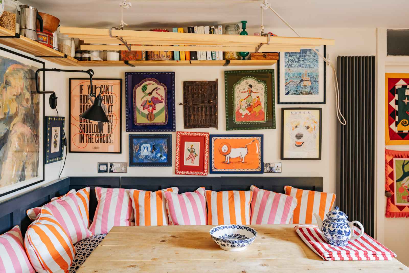 • Intentionally avoid lining anything up (e.g don’t have tops of pictures ending at the same height or equal spacing between pieces). This means you won’t notice if things don’t look even later