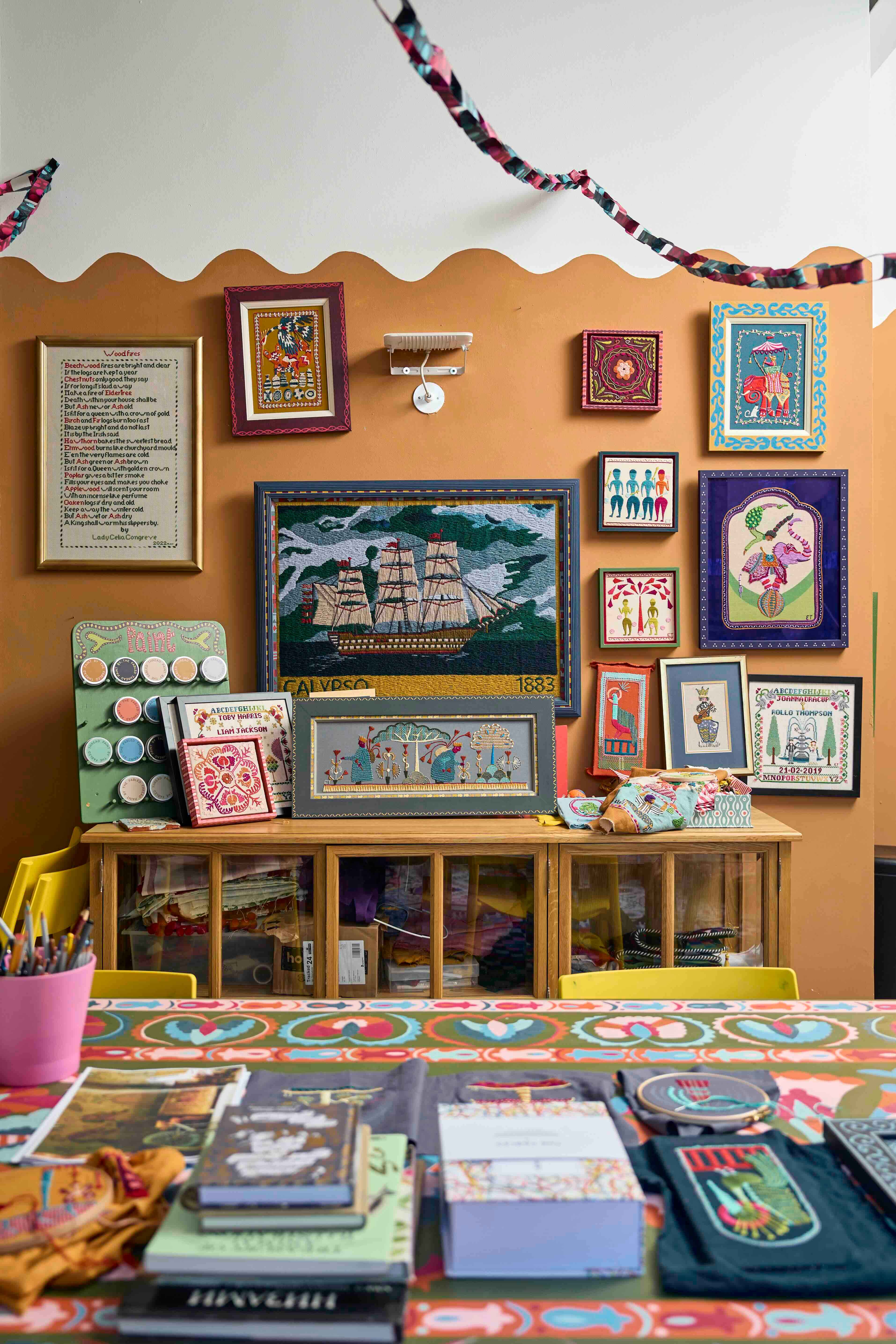 • Yes! Adding embroidery to your picture wall creates a range of textures. In fact I’d encourage you to add as many mixes of media as possible to your picture wall. I love combining pictures with embroidery, decorative plates, prints, collage... the more variety the better!