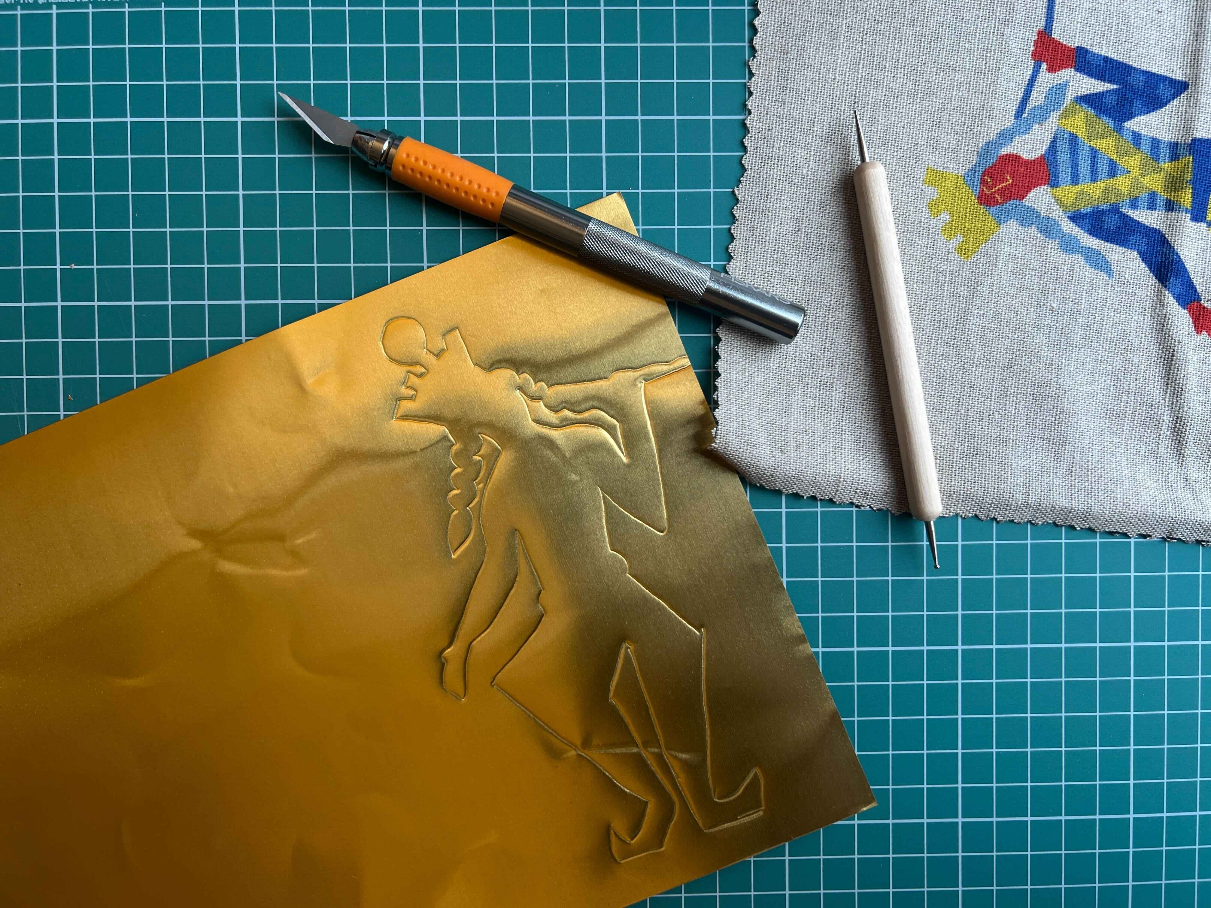 - You can emboss directly, or if you prefer to draw out your design first and trace it onto the metal, then you’ll also need tracing paper and a pencil. It also helps to have a rolling pin to hand to as this is useful for flattening the metal, making sure the design is long-lasting.