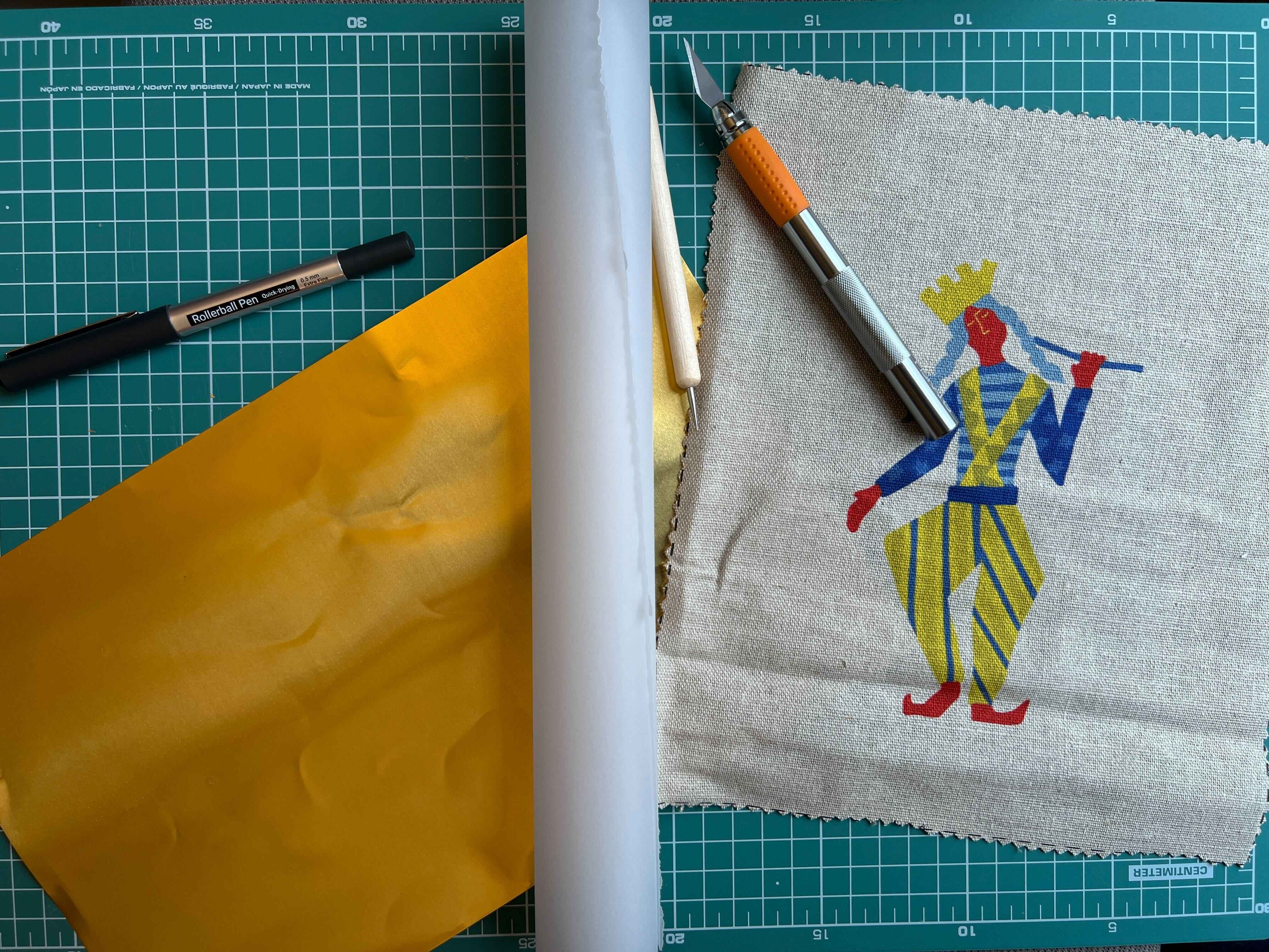 - Once you have finished embossing your musicians, roll the rolling pin back across it, applying reasonable pressure. This helps fix the embossing and makes it more permanent.