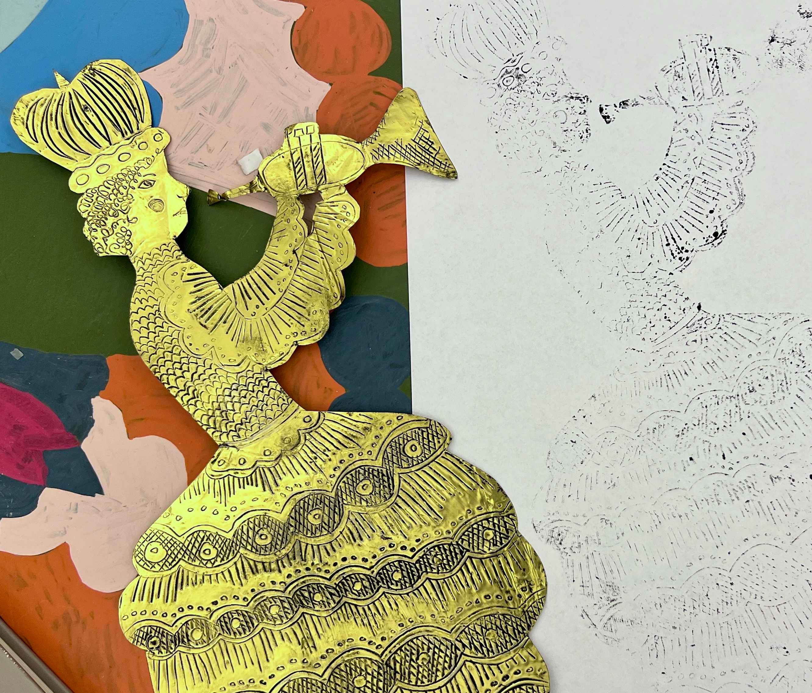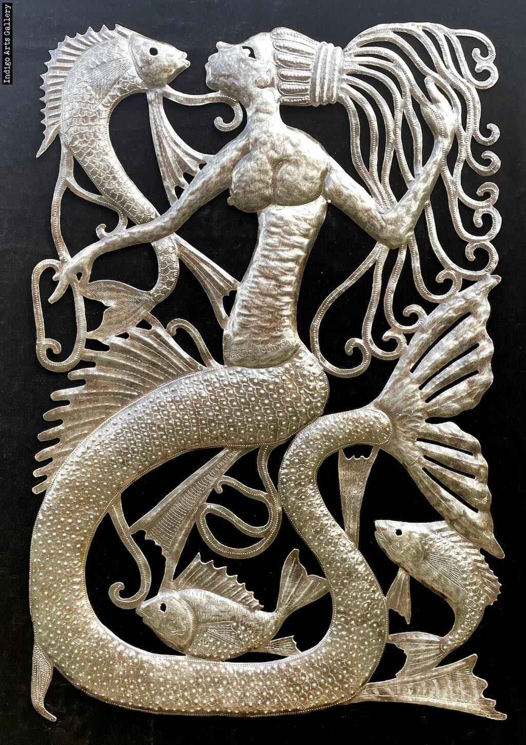 Metal relief art has a long tradition in several cultures. It is usually made with much thicker metal than embossing sheets, with the benefit of being a durable material which is relatively easy to access. In Haiti, metal relief art is made using the metal from steel oil drums, a practice which was pioneered by the blacksmith Georges Liautaud (1899–1991). Liautaud repurposed steel oil drums and other scrap metal to create embossed sculptures. You can explore and buy Haitian metalwork here.